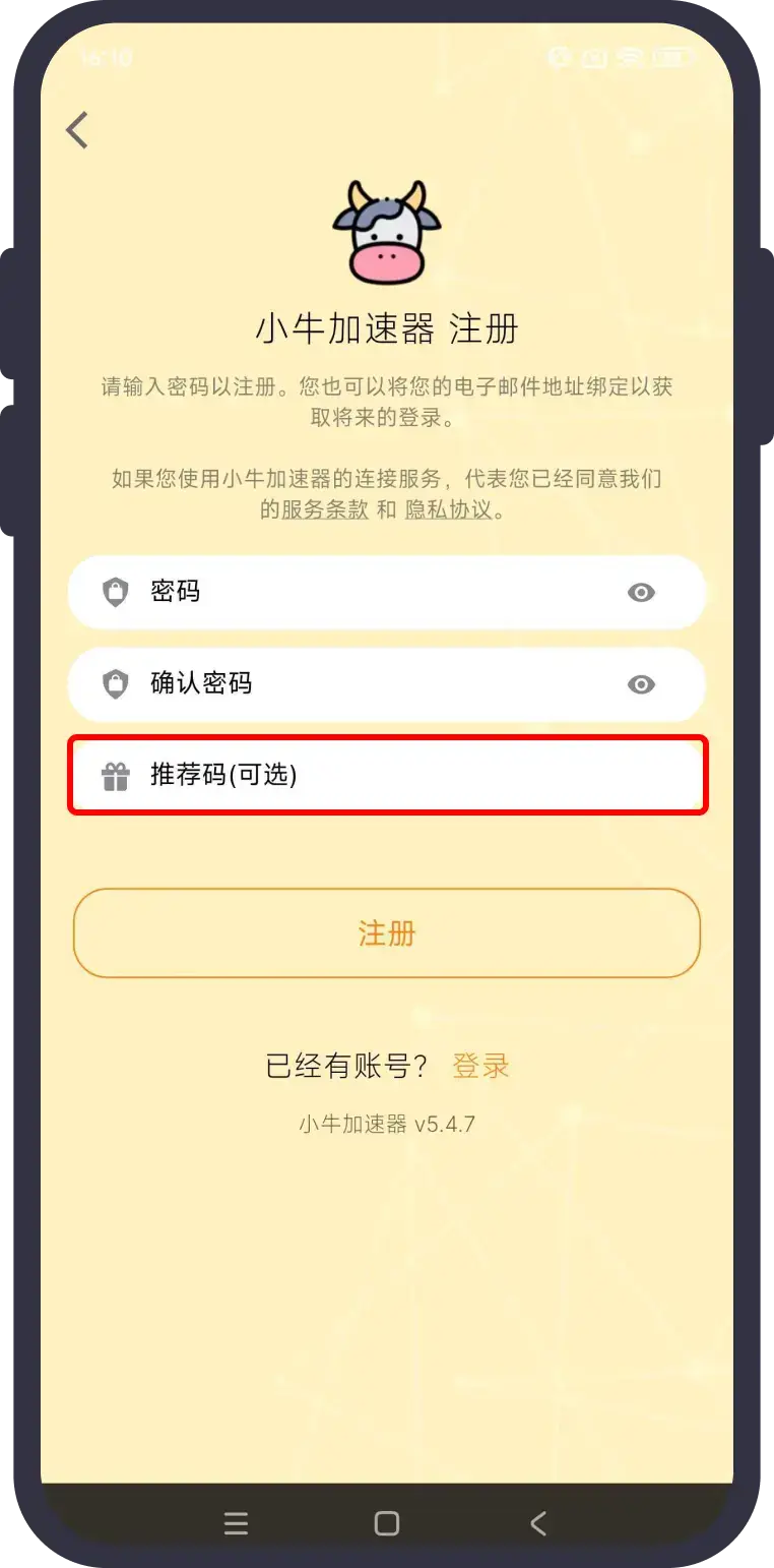 在注册页面粘贴推荐码,并完成账号注册。